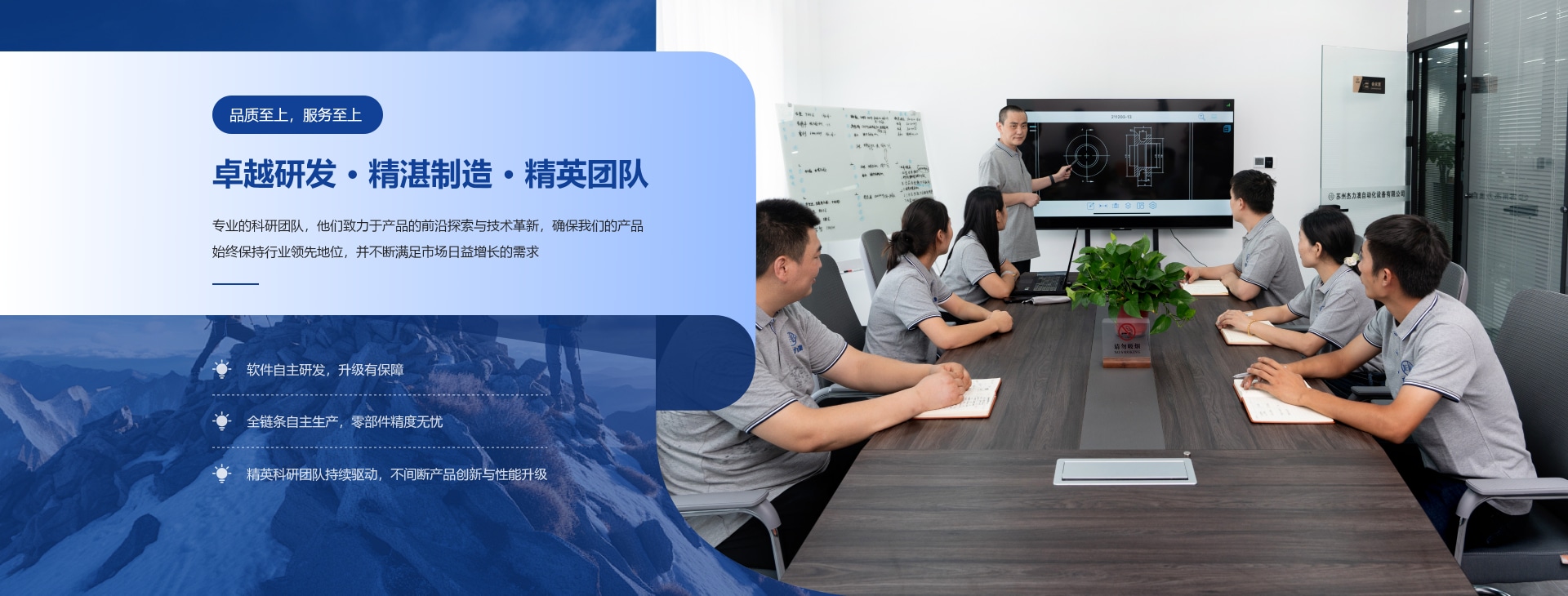公司擁有一支高水平的研發(fā)和制造團(tuán)隊(duì),包括軟硬件契合的研發(fā)、設(shè)計(jì)和生產(chǎn),研發(fā)和生產(chǎn)了多款行業(yè)自動(dòng)化設(shè)備, 并和多家高新技術(shù)企業(yè)建立了長(zhǎng)期的合作關(guān)系,業(yè)務(wù)及影響力遍及整個(gè)大陸地區(qū), 成為工業(yè)級(jí)客戶提升效率、 制造企業(yè)價(jià)值的長(zhǎng)久合作伙伴,在國(guó)內(nèi)領(lǐng)域建立領(lǐng)導(dǎo)地位。